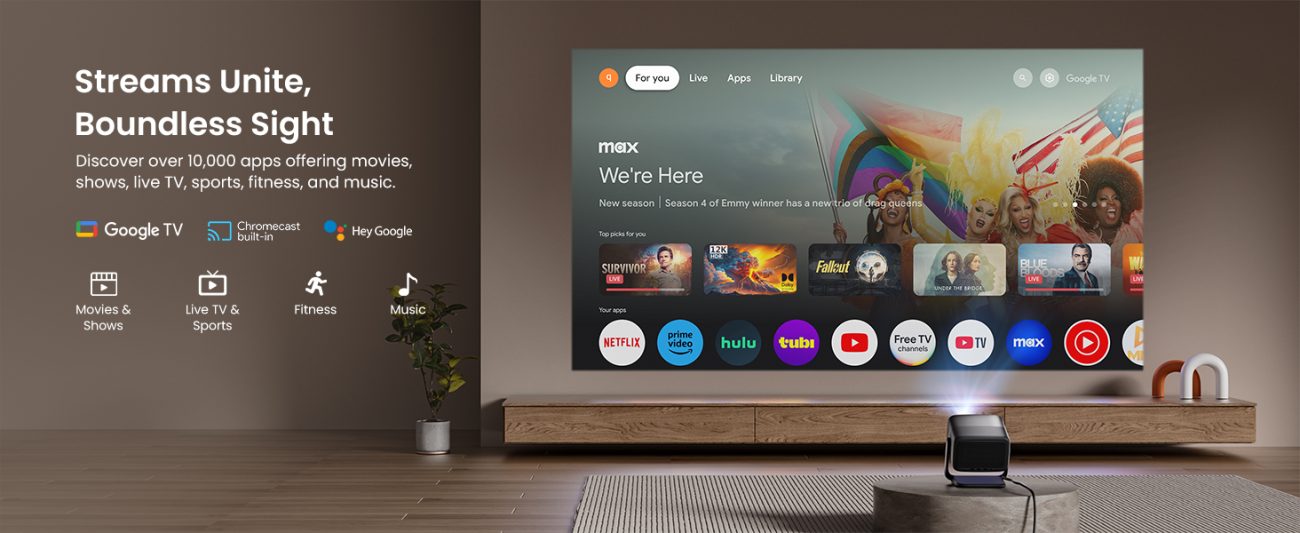 Jmgo N1s Ultra 4K Quốc Tế – Máy Chiếu Thông Minh Tích Hợp Google TV Tìm Kiếm Giọng Nói