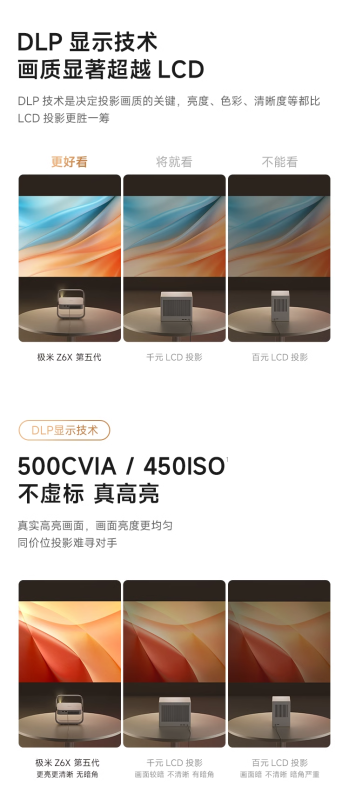 Máy chiếu XGIMI Z6X Gen 5 sử dụng công nghệ hiển thị DLP , có độ phân giải 1080P + độ sáng 500 CVIA lumens và hỗ trợ độ bao phủ 121% gam màu Rec.709.
